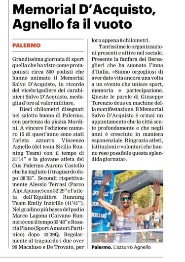 Anche quest’anno, con entusiasmo e spirito di squadra, abbiamo dato vita alla 15ª edizione del Memorial Podistico Salvo D’Acquisto. Domenica 21 settembre 2025 abbiamo animato le strade di Palermo, accogliendo atleti, appassionati e amici in un percorso cittadino di circa 10 km che ha trasformato Via Libertà in un vero palcoscenico di sport e condivisione. Il nostro obiettivo è stato quello di celebrare il ricordo di Salvo D’Acquisto attraverso una giornata fatta di emozioni, competizione e amicizia, rendendo protagonisti non solo i runner ma tutta la comunità che ci sostiene e ci accompagna ogni anno. Siamo orgogliosi di aver valorizzato ancora una volta i valori di inclusione, collaborazione e solidarietà, grazie alla partecipazione di numerose società sportive e realtà associative che hanno condiviso con noi questa esperienza unica.